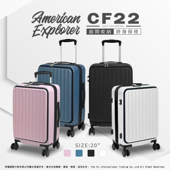 20吋 CF22 TSA鎖 靜音輪 輕量 大容量 終身保修 前開式 霧面 防刮 旅行箱 登機箱 拉桿箱 行李箱