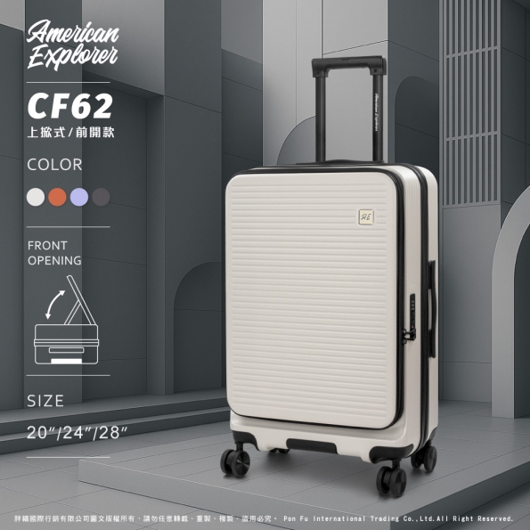 熱賣款 上掀式 20吋+28吋 前開 CF62 行李箱 American Exp...NT$ 3,580加入購物車熱賣款 上掀式 20吋+28吋 前開 CF62 行李箱 American Explorer 可擴充 筆電夾層 飛機大輪 拉桿箱 雙層防爆拉鏈 TSA鎖 旅行箱 大容量 兩件優惠 霧面 防刮