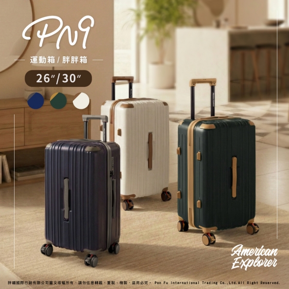 26吋 PN9 胖胖箱/運動箱 雙層防爆拉鏈 拜耳PC材質 TSA海關鎖 大容量...NT$ 1,550加入購物車26吋 PN9 胖胖箱/運動箱 雙層防爆拉鏈 拜耳PC材質 TSA海關鎖 大容量 避震剎車彈簧輪 行李箱 輕量 American Explorer 美國探險家 霧面防刮 旅行箱