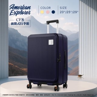 【American Explorer 美國探險家】行李箱 CF8 輕量 前開收納 上掀式 登機箱 拉桿箱 旅行箱 大容量 雙排靜音輪 避震煞車輪 霧面 防刮 防盜/防爆拉鏈